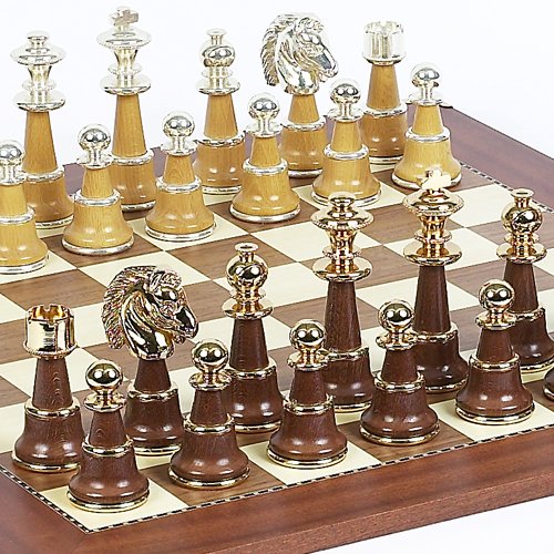 - Solid Brass Chessmen Plated With 24K Gold/Silver, With Maple/Walnut In Between From Italy.